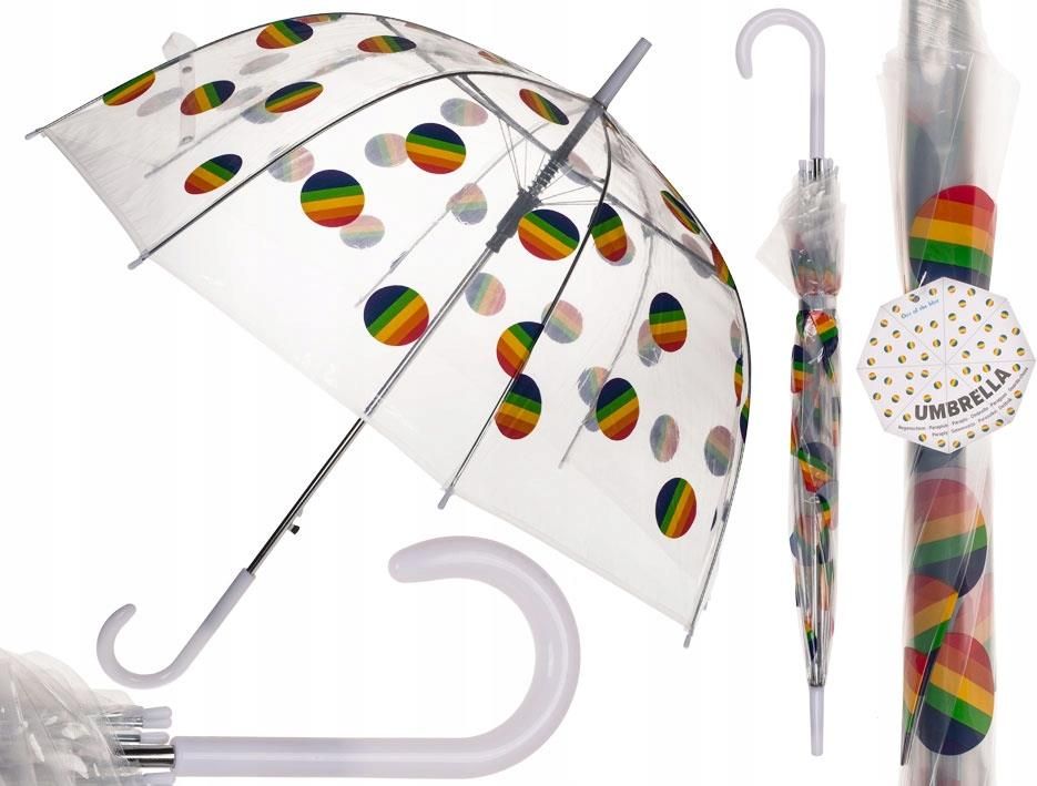 Parasolka kopuła - wzór tęczowe koła Parasolka kopuła - wzór tęczowe koła Komfortowy parasol w kształcie kopuły. Głęboki – chroni przed deszczem i wiatrem, posiada wytrzymały stelaż oraz dużą rączkę wygodną do trzymania. Elegancki i uniwersalny design sprawia, ze model jest odpowiedni zarówno dla …