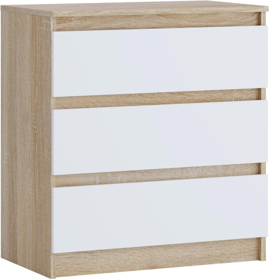 Puveromeble Komoda Szafka Sonoma Biała 3 Szuflady Reszel
