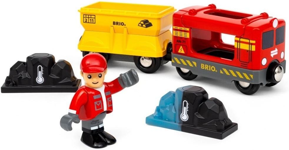 All aboard the Gemstone Cargo Train for a journey filled with wonder and discovery! This delightful train set from BRIO is more than just a toy—it's a gateway to a world where imagination meets science, perfect for little engineers aged 3 and up. At the heart of this set is a vibrant red and yellow cargo engine, designed to capture the attention of young train enthusiasts. The engine is accompanied by a sturdy cargo wagon, ready to transport its precious load across the tracks of your BRIO World railway or to embark on standalone adventures around the playroom. But what truly sets this train apart are the two magical gem loads included in the set. These aren't your ordinary cargo—they react to changes in temperature, offering a fascinating color-changing experience. Watch as the gems transform before your eyes, sparking curiosity and encouraging interactive play. Whether they're warmed by little hands or cooled in a chilly breeze, these gems are sure to captivate and inspire. Adding to the fun is a charming driver figure that fits snugly inside the train, ready to steer the engine on its next big adventure. This figure not only enhances the storytelling aspect of play but also helps develop fine motor skills as children practice placing and removing the driver from the train. Designed with both safety and durability in mind, the Gemstone Cargo Train is crafted from high-quality materials that can withstand the rigors of enthusiastic play. Its components are easy to handle, ensuring that little hands can easily connect and disconnect the pieces, fostering independence and problem-solving skills. Whether your child is a seasoned conductor or just beginning their railway journey, this train set is a perfect addition to any collection. It encourages creative play, scientific exploration, and social interaction, making it an ideal gift for birthdays, holidays, or just because. So, why wait? Let the Gemstone Cargo Train take your child on a colorful adventure where learning and play go hand in hand. It's time to discover the magic of color-changing cargo and the endless possibilities of imaginative play!
