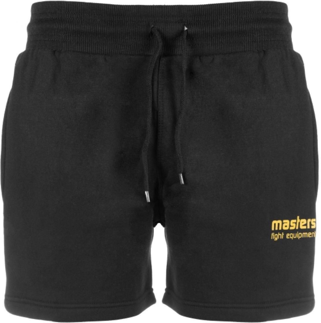 Spodenki Masters W 04954-01M Właściwości Damskie krótkie spodenki marki Masters Prosty sportowy krój Idealne do treningów i codziennej rekreacji dwie zamykane na zamek kieszenie po bokach regulacja sznurkiem w pasie logo na nogawce Materiał 80% bawełna, 20% poliester Kolor czarny