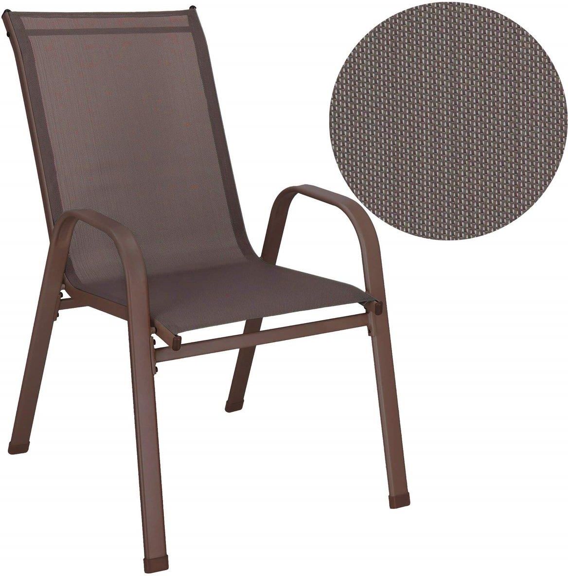 KRZESŁO OGRODOWE Marka: Springos® Kolor: brązowy Konstrukcja: stal malowana proszkowo Materiał siedziska: 100% textilene Liczba sztuk: 1 Wysokość całkowita: 92 cm Szerokość całkowita: 53 cm Głębokość całkowita: 72 cm Maksymalny udźwig: 120 kg Produkt do samodzielnego montażu - instrukcja w zestawie …