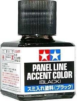 TAMIYA Panel Accent Black Preparat do podkreślania linii podziału - czarny. Nr katalogowy: 87131 Rodzaj: Farby / lakiery / pasty Kolor: Czarny Płeć: Chłopcy,Dziewczynki Pojemność: 40 ml Wymagania wiekowe: 14 lat