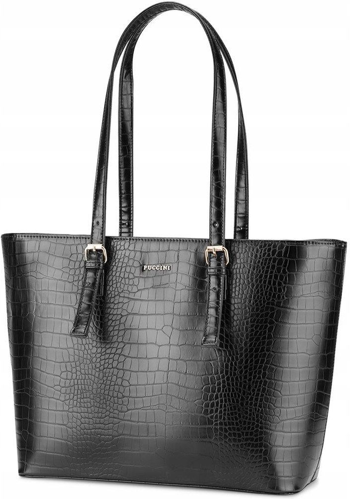Torebka Damska Shopper Na Ramię PUCCINI Duża Mieści A4 Czarna BML054D-1 Reszel