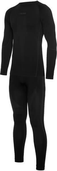 VIKING EIGER odzież termiczna męska komplet bluza i spodnie czarne Set Eiger to model bielizny termoaktywnej, idealnie sprawdzający się jako pierwsza warstwa odzieży. Dzięki zminimalizowaniu ilości szwów oraz elastycznej i technicznej dzianinie, komplet doskonale dopasowuję się do sylwetki ciała. Efektem tego jest komfort i swoboda ruchów oraz brak otarć i uszkodzeń skóry w trakcie aktywności fizycznej. Zestaw bielizny został zaprojektowany tak, aby pot i wilgoć były szybko odprowadzane na zewnątrz a jednocześnie została zachowana równowaga cieplna, nie doprowadzając do nadmiernego przegrzania się lub wychłodzenia organizmu. Kompozycja dzianiny (55% Polyester / 37% Polyamide / 8% Elastane) przyczynia się do minimalizowania przykrego zapachu, dostosowywania się do budowy ciała oraz jego dogrzewania. Dodatkowym atutem bielizny Eiger Set jest solidne opakowanie, ułatwiające przechowywaniei sposób ekspozycji produktu. Do kompletu zostały dołączony GRATIS w postaci bokserek(Eiger Boxer shorts). Materiał: 55% Poliester / 37% Poliamid / 8% Elastan Główne zalety szybkoschnąca bielizna termoaktywna wykonana w bezszwowej technologii doskonała elastyczność wysoki komfort użytkowania druga skóra uniwersalna kolorystyka szeroka gama dostępnych rozmiarów odprowadza wilgoć i pot podczas treningu Bielizna z grupy Level 2- linia produktów bezszwowych. Bardzo elastyczne, idealnie dopasowujące się do kształtów ciała. Zastosowanie w strefach wzmożonej potliwości struktury siatkowej, zwiększa odprowadzanie wilgoci na zewnątrz. Polecane szczególnie dla aktywności takich jak narty, snowboard, turystyka górska, outdoor, wspinaczka górska, wyprawy zimowe.