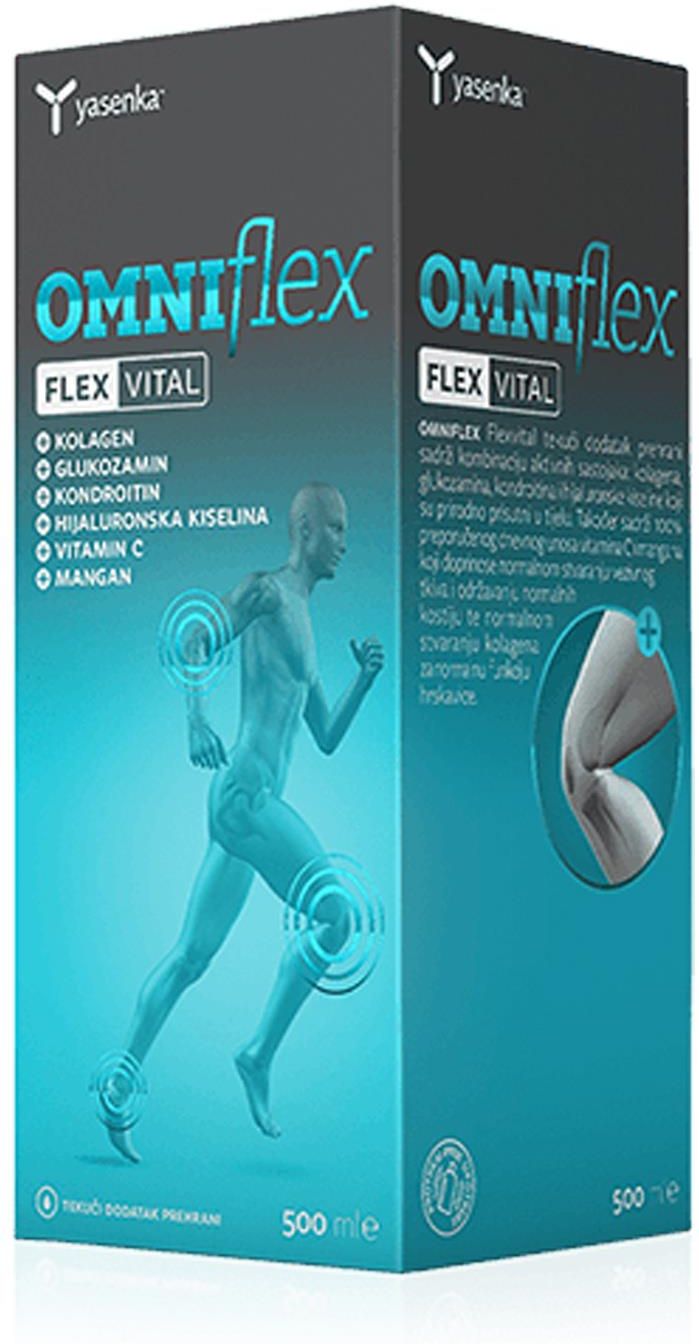 YASENKA Omniflex Flex Vital suplement diety 500ml OmniFlex FLEX VITAL - suplement diety w płynie Suplement diety zawierający kolagen, glukozaminę, chondroitynę, kwas hialuronowy, witaminę C i mangan. Witamina C jest niezbędna do tworzenia kolagenu, wspomagając prawidłowe funkcjonowanie chrząstki i …