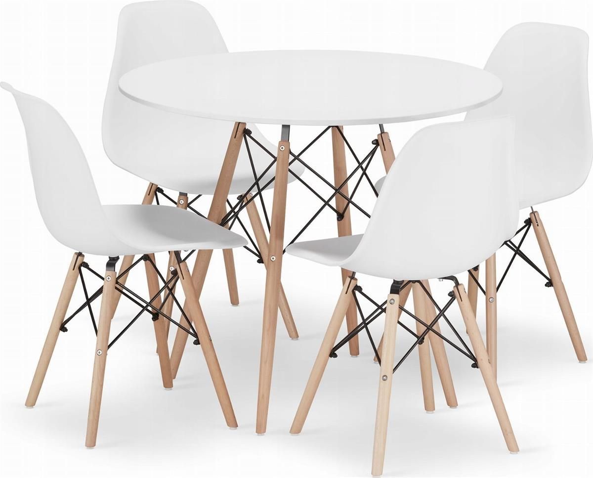 Zestaw stół okrągły TODI 90 biały + 4 krzesła OSAKA białe Reszel