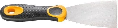 HARDY Szpachelka budowlana 4 cm Poręczna szpachelka budowlana usprawnia drobne prace remontowe i wykończeniowe. Lekkie narzędzie wyróżnia się solidną konstrukcją. Wyprofilowane, płaskie ostrze ułatwia wyrównywanie zapraw i klejów na niewielkiej powierzchni. Szpachelka przyda się także do maskowania dziur, wygładzania niewielkich nierówności lub zrywania zaschniętych mas i klejów. Stalowe ostrze jest mocno osadzone w uchwycie z tworzywa sztucznego. Ergonomiczna rączka zapewnia komfortową, precyzyjną pracę. Dzięki otworowi w uchwycie narzędzie można łatwo zawiesić. Prezentowany model szpachelki pochodzi z serii nowoczesnych akcesoriów budowlanych marki KAEM HARDY. Parametry Marka: Hardy Zastosowanie: Szpachelka budowlana Materiał wykonania: Metal, Tworzywo sztuczne Długość (cm): 4 cm Kolor dominujący: Czarny, Żółty Kod EAN: 5905061980573