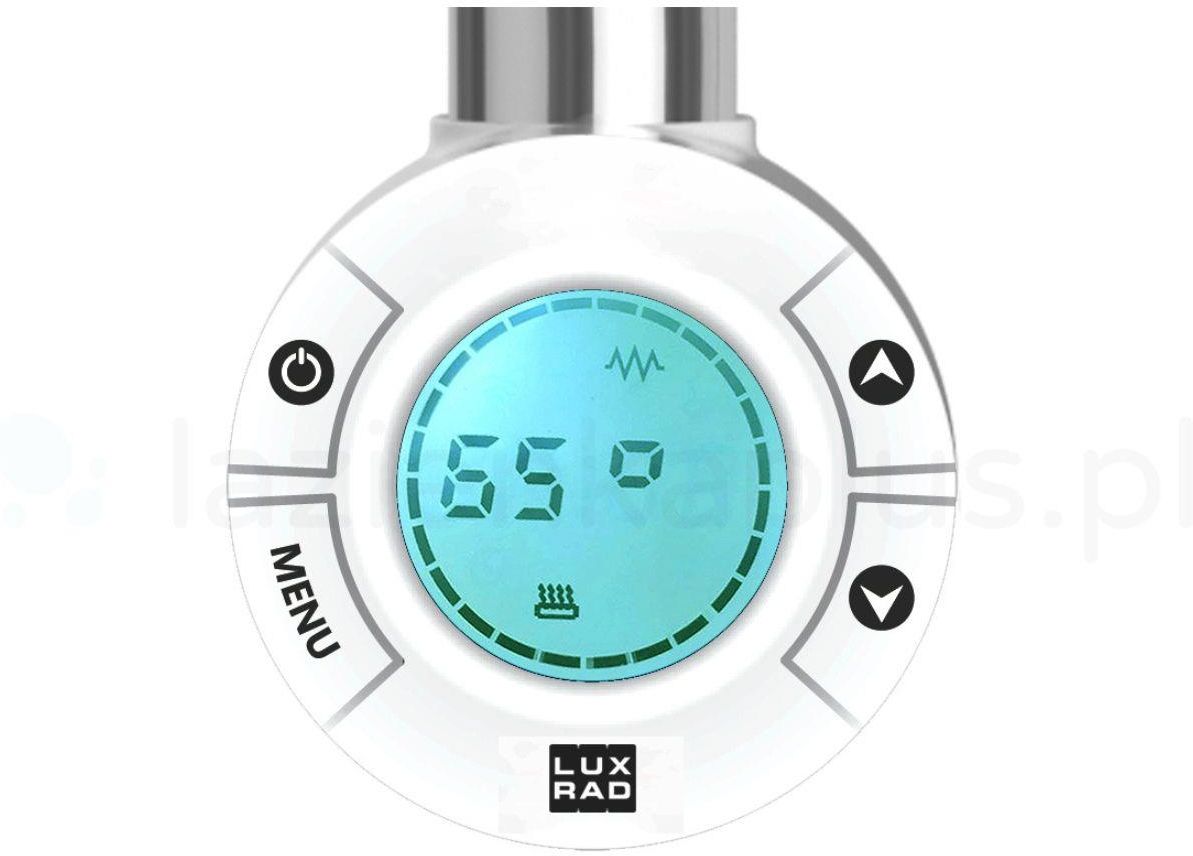 Grzałka elektryczna do grzejnika LUXRAD GLX 600W biała Informacje o produkcie Grzałka elektryczna GLX o mocy 600 W w kolorze białym – nowoczesne i energooszczędne uzupełnienie grzejnika. Cechy i zalety Grzałka GLX 600W biała to niezależne źródło ciepła, które zapewnia komfort cieplny w dowolnym momencie, niezależnie od pracy systemu centralnego ogrzewania. Urządzenie oferuje dwa tryby pracy: dowolny (30–70°C) oraz ECO z temperaturą 50°C. Wyposażona w cyfrowy wyświetlacz informujący o czasie, temperaturze i aktywnym trybie pracy. Zintegrowany timer umożliwia ustawienie czasu grzania od 30 min do 8 h. Grzałka pozwala na indywidualne sterowanie temperaturą w pomieszczeniach i jest idealnym rozwiązaniem na sezon przejściowy lub jako wsparcie w razie awarii instalacji głównej. Bezpieczeństwo użytkowania zwiększa funkcja blokady przed dziećmi. Specyfikacja techniczna • Moc grzewcza [W]: 600 W • Dwa tryby pracy: ECO (50°C) i regulowany (30–70°C) • Cyfrowy wyświetlacz: temperatura, czas, tryb • Timer: od 30 minut do 8 godzin • Funkcja blokady rodzicielskiej • Kolor: biała • Przewód przyłączeniowy spiralny: 1,3-1,4 m • Gwarancja: 24 miesiące Luxrad Polska Mazur i Wspólnicy S.K.A. - producent grzejników - dokładamy wszelkich starań, aby każdy produkt powstał z wysokich jakościowo surowców gwarantujących długoletnie użytkowanie i wyjątkowy wygląd. Zakład produkcyjny istnieje na rynku 25 lat, ale to 15 lat temu powstała marka Luxrad. A jak jest dzisiaj? Nowoczesny zakład produkcji, innowacyjne technologie, unikatowy design, dostępność oferty w całej Europie. I coś jeszcze. Produkt w 100% „Made in Poland”.
