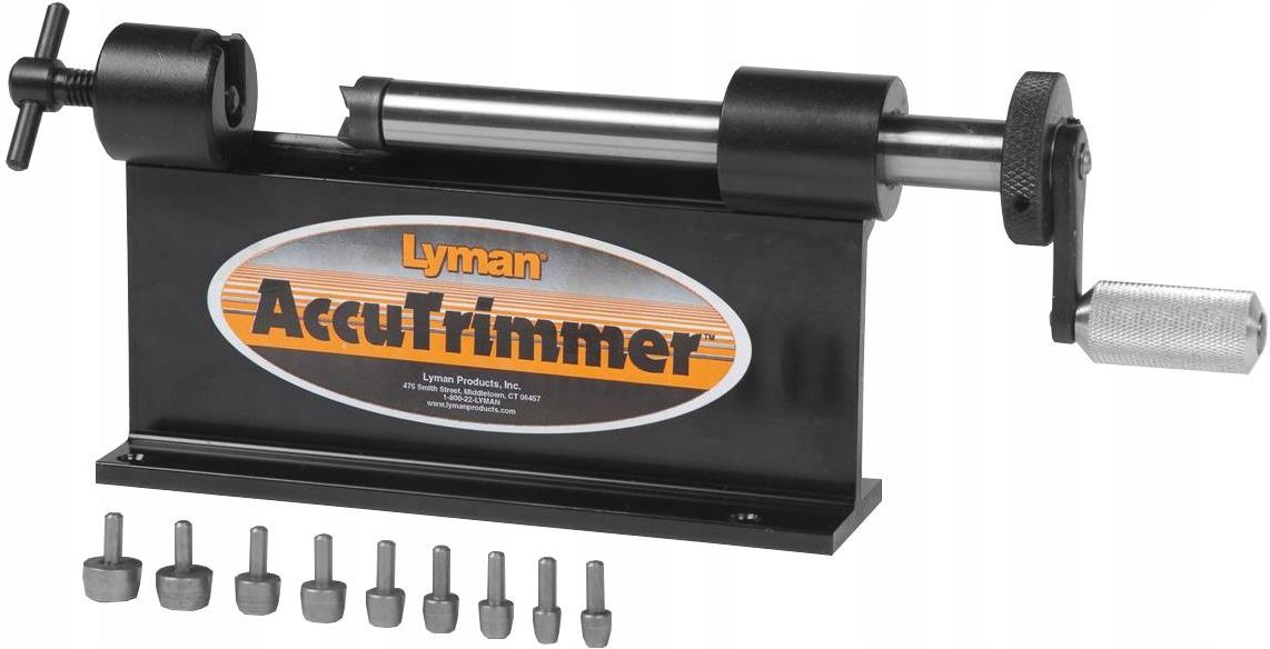 Trymer do skracania łusek Lyman 7862210 to sprawdzone narzędzie, które pozwala na szybkie i jednocześnie precyzyjne skracanie łusek amunicji wielu kalibrów. Trymery do skracania łusek - akcesoria Lyman do elaboracji amunicji Lyman Accu Trimmer ma solidną konstrukcję ze stali i stopu aluminium, co sprawia, że będzie nam niezawodnie służył przez długie lata. W zestawie wraz z trymerem otrzymujemy 9 pilotów (prowadnic), które pasują do niemal wszystkich popularnych kalibrów amunicji. Do korzystania z trymera konieczne jest posiadanie standardowych uchwytów łusek (shell holderów). Piloty pasują do poniższych kalibrów: .22: .22 Hornet, .221 Fireball, .22/250, .220 Swift, .222 Remington, . 222 Remington Mag.,.223 Remington, .223 WSSM, 5,6x50 RMag .24: .243 Winchester, .243 WSSM, .244, 6 mm Remington .27: .270 Winchester, .270 WSM .28: 7 mm/08 Remington, 7-30 Waters, 7 mm Remington Mag., 7 Weatherby Mag., 7 mm STW, 7 mm Remington Ultra Mag., 7 × 57 Mauser, 7 × 64 Brenneke, 7 × 65R Brenneke, .280 Remmington (7 mm Express) .30: 30M1 Carbine, .30-30, .300 Savage, .307 Winchester, .308 Winchester, .30-06, .300 WSM, .300 Winchester Mag., .300 Remington Ultra Mag., .300 Remington Ultra Mag SA, .300 Weatherby Mag., 7,62x39 .35: .35 Remington, .356 Winchester, .358 Winchester, .35 Whelen 9 mm:.38 Super Auto, 9mm Luger, 9x23mm, .380 Auto .44: .44 Mag/Spl/.44 Russian .45A: .45 ACP/.45 Win Mag, .45 Schofield, .45 Colt, .454 Casull. DANE TECHNICZNE Informacje producenta Producent: Lyman, USA