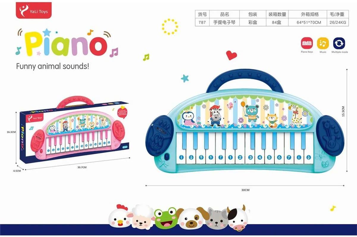 Kolorowe pianino elektroniczne YaLi Toys to doskonała zabawka edukacyjna, która wprowadzi Twoje dziecko w świat muzyki i dźwięków zwierząt. Instrument wyposażony w 15 klawiszy oraz urocze ilustracje zwierzątek zapewnia godziny kreatywnej zabawy. Opis produktu To wyjątkowe pianino łączy naukę z zabawą, oferując różnorodne dźwięki zwierząt i melodie. Solidna konstrukcja z wysokiej jakości plastiku gwarantuje długotrwałe użytkowanie. Ergonomiczny uchwyt umożliwia łatwe przenoszenie zabawki. Kolorowe przyciski i atrakcyjne grafiki stymulują rozwój wzrokowy i słuchowy dziecka. Pianino rozwija koordynację ręka-oko, kreatywność muzyczną oraz zdolności poznawcze. Idealne do zabawy w domu, przedszkolu czy podczas podróży. Najważniejsze cechy Wymiary zabawki – 30 x 15 cm, idealny rozmiar dla małych rączek Wiek – od 18 miesięcy, wspiera wczesny rozwój muzyczny Funkcje – dźwięki zwierząt, melodie i efekty dźwiękowe Materiał – bezpieczny plastik ABS, odporny na uszkodzenia Korzyści edukacyjne – rozwija słuch muzyczny i koordynację ruchową Zastosowanie – zabawa domowa, edukacja przedszkolna, rozrywka w podróży