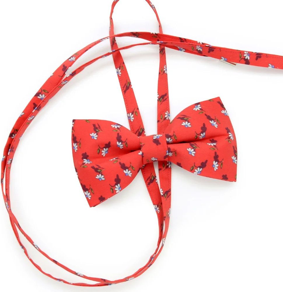 Mucha damska Willsoor Zestaw składający się z muchy gotowej opakowanej w kartonowe pudełko. Muchę swobodnie przesuwa się po paskach co sprawia, że można ją nosić na wiele sposobów: na szyi jako ozdoba spełniająca rolę naszyjnika, pod szyją jako tradycyjną muszkę, we włosach lub jako pasek. Elegancko zapakowany zestaw jest również idealnym pomysłem na prezent. - Tkanina: 100% bawełny - Kolor muchy: czerwona w białe margaretki - Długość paska: 70cm - Wymiary: 12cm x 5,5cm - Opakowanie: kartonowe pudełko Willsoor - Producent: Willsoor