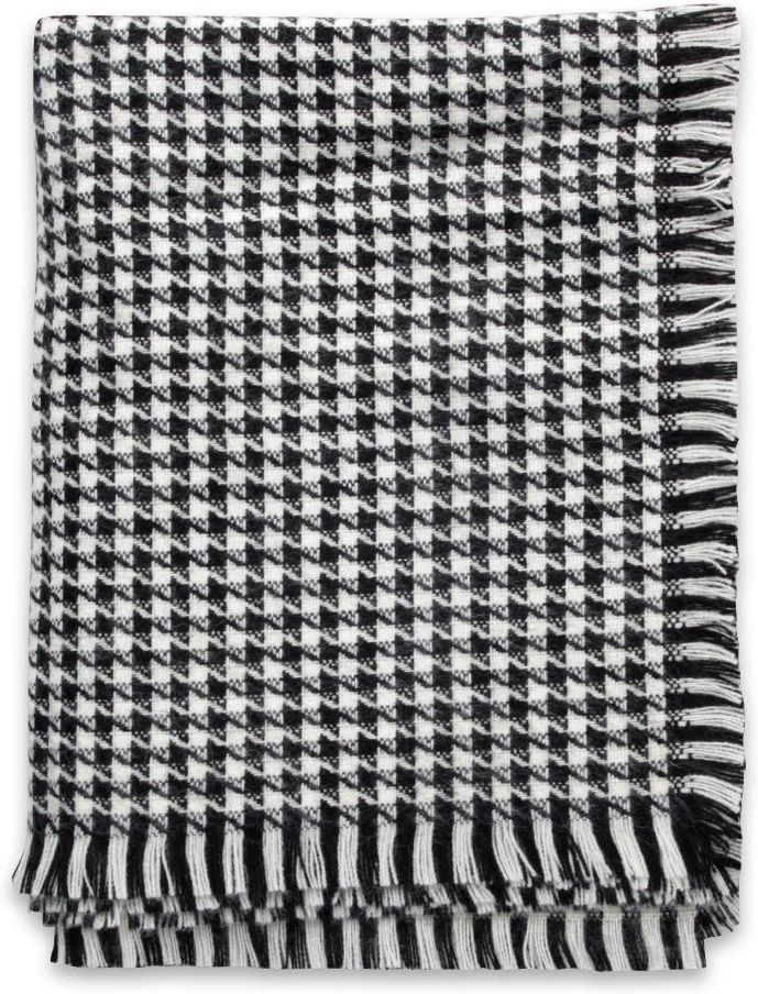Cienki szal w pepitkę Kolor: czarno-biała pepitka Tkanina: 100% wiskoza Długość: 180 cm Szerokość: 60 cm Pranie tylko chemiczne Elegancki szal w uniwersalnych kolorach. Urozmaici każdą koszulę, kurtkę czy płaszcz. Zakończony krótkimi frędzlami.