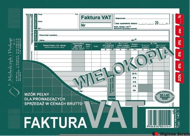 140-3N/E Faktura Vat A5Brut. Wielokopia Michalczyk I Prokop Ropczyce