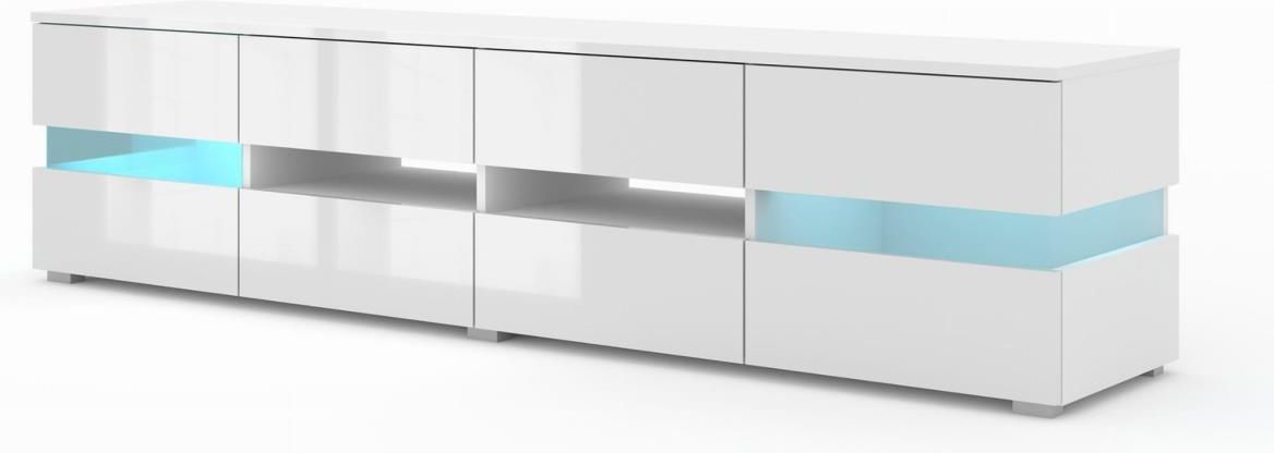 Nowoczesna, duża szafka RTV stojąca VIPER-187 biały połysk, polskiego producenta BIM FURNITURE. Elegancka, prosta w stylu i bardzo funkcjonalna. Wykonana z laminowanej płyty meblowej w kolorze biały połysk/biały mat. Mebel posiada 2 półki oraz 4 szafki. Całość zamykana drzwiczkami. Idealnie pasuje …