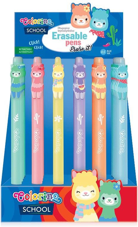 Długopis wymazywalny Colorino to niezbędnik każdego piórnika. Każda pomyłka czy skreślenie znika za pociągnięciem silikonowej końcówki. Wesołe długopisy wymazywalne to gwarantowany uśmiech na twarzach dzieci, jak i dorosłych. średnica końcówki: 0,5mm niebieski tusz różne kolory obudowy Uwaga! …