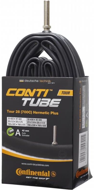 Dętki Continental to produkty najwyższej jakości. Wieloletnie doświadczenie tego producenta oraz stosowanie nowoczesnych technologii zapewniają nie tylko bezproblemową jazdę, także bezpieczeństwo i większe osiągi. Dzięki zastosowaniu systemu Unitube dętki te mogą pasować do większej ilości rozmiarów opon niż pozostałe dętki tradycyjne. Wersja "Hermetic Plus": Dzięki udoskonalonej mieszance bardziej kompaktowa, lżejsza wersja Podwyższona zawartość butylu i większa grubość ścianek zapewniają lepszą ochronę przed przebiciem i uchodzeniem powietrza Przeznaczone do najbardziej kompleksowej ochrony przed przebiciem - preferowany wybór wypożyczalni rowerów Specyfikacja: Bezszwowa i wulkanizowana, pewność jednakowej okrągłości i solidnego mocowania trzonu wentyla Zastosowanie: Miasto, Treking Pasujące rozmiary opon (zakres w ETRTO): od 32-622 do 47-622 od 32-630 od 37-635 do 42-635 Rodzaj wentyla: Dunlop Długość wentyla: 40 mm Waga: 225 g Dołączona tabela zawiera informacje ułatwiające wybranie właściwej dętki. W celu dopasowania dętki do opony/obręczy należy zwrócić uwagę m.in. na rozmiar koła (średnicę), szerokość balona opony, rozmiar otworu na wentyl w obręczy i preferowany typ jazdy (np. szosa, MTB, miasto).