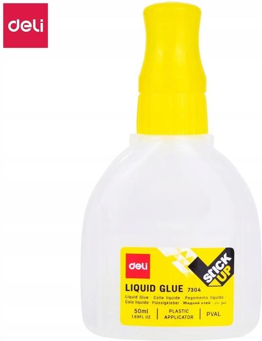 Klej szkolno-biurowy w płynie marki DELI, model 7304, zamknięty w poręcznej, ergonomicznej buteleczce o pojemności 50 ml. Idealny do codziennych zastosowań — w szkole, pracowni, biurze czy przy projektach DIY.