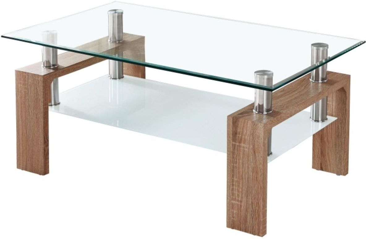 Ława prostokątna z blatem ze szkła hartowanego. Szkło Hartowane jest nawet 4 razy bardziej wytrzymałe w porównaniu do szkła zwykłego tej samej grubości, charakteryzuje się również zwiększoną wytrzymałością na nagłe zmiany temperatury, jest także bezpieczniejsze, po stł uczeniu rozpada się na drobne kawał ki. Rant blatu posiada frez w koło, blat dolny wykonany ze szkła mlecznego. Podstawa został a wykonana z MDF laminowanego w kolorze dąb sonoma. Połączenie blatu z podstawą wykonano z elementów chromowanych. Parametry: blat, szkło hartowane transparentne półka dolna szkło mleczne podstawa kolor dąb sonoma Wymiary: wysokość - 45 cm szerokość - 60 cm długość - 100 cm Ława do samodzielnego montażu.