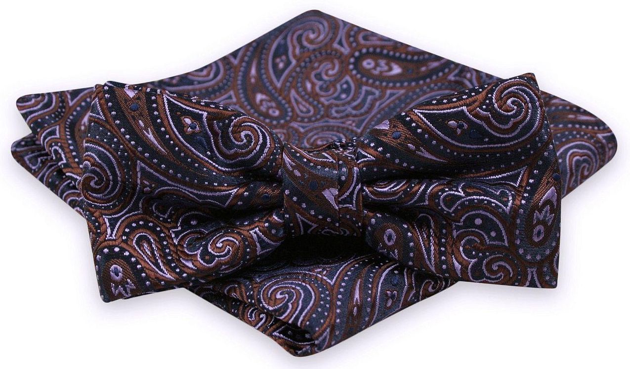 Fioletowo-Brązowa Mucha Męska -ALTIES- z Taką Samą Poszetką, w Orientalny Wzór MUALTS0602 Ropczyce
