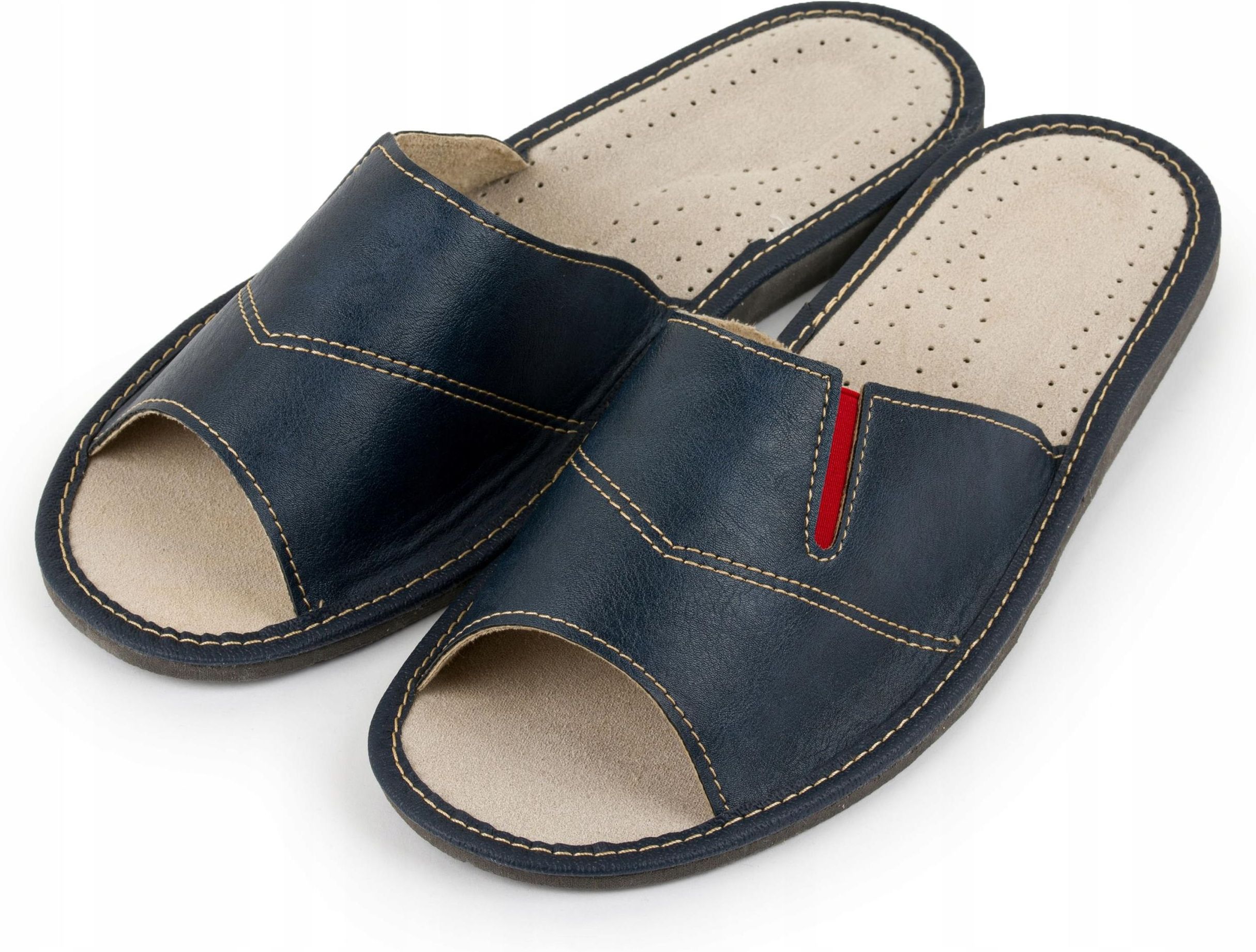 • Skórzane Pantofle Męskie Niebieskie Kapcie