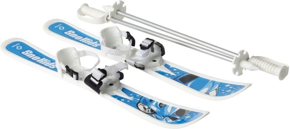 Narty z kijkami dla dzieci Hamax - Niebieskie - HAM561001 Kod produktu: 7029775610019 Narty z kijkami dla dzieci marki Hamax w kolorze niebieskim to doskonały wybór dla najmłodszych entuzjastów zimowych zabaw. Dzięki regulowanym paskom, można je dopasować do większości rodzajów obuwia. Narty pomagają utrzymać równowagę i stawiać pierwsze kroki na śniegu. Model z wytrzymałego, odpornego na niskie temperatury tworzywa. Do kompletu dołączono również kijki. Narty z kijkami Hamax - Najważniejsze cechy: Zimowa zabawa dla maluchów: Narty plastikowe Hamax są idealne do zabawy w zimowe dni. Dzięki nim dzieci mogą cieszyć się na śniegu, ucząc się równocześnie utrzymywania równowagi. Dopasowanie do obuwia: Dzięki regulowanym paskom narty te można dopasować do różnych rodzajów i rozmiarów obuwia, co sprawia, że są bardzo wszechstronne i łatwe w użyciu. Wytrzymałość na niskie temperatury: Narty Hamax są wykonane z wytrzymałego tworzywa, które jest odporne na niskie temperatury. Dzięki temu dzieci mogą cieszyć się nimi w różnych warunkach śniegowych. Kijki w zestawie: Do kompletu dołączono kijki, co stanowi dodatkową atrakcję i ułatwienie podczas jazdy na nartach. Bezpieczeństwo i certyfikat CE: Narty Hamax posiadają certyfikat CE, co oznacza, że spełniają europejskie standardy bezpieczeństwa. To istotne, zwłaszcza w przypadku produktów dla dzieci. Zalecany wiek i obciążenie: Narty Hamax z kijkami są zalecane dla dzieci w wieku 2-4 lat. Maksymalne obciążenie wynosi 18 kg, co jest odpowiednie dla maluchów. Jazda po płaskim terenie: Zaleca się używać narty głównie do jazdy po płaskim terenie, co sprawia, że są doskonałe do nauki podstaw jazdy na nartach.
