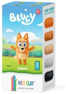 Hey Clay Bluey – Bingo. Zestaw do stworzenia uroczej Bingo z pomocą interaktywnej aplikacji z instrukcjami i zabawnymi animacjami. Masa jest miękka, lekka, nietoksyczna i bezpieczna, a utwardzona figurka staje się trwałą zabawką.