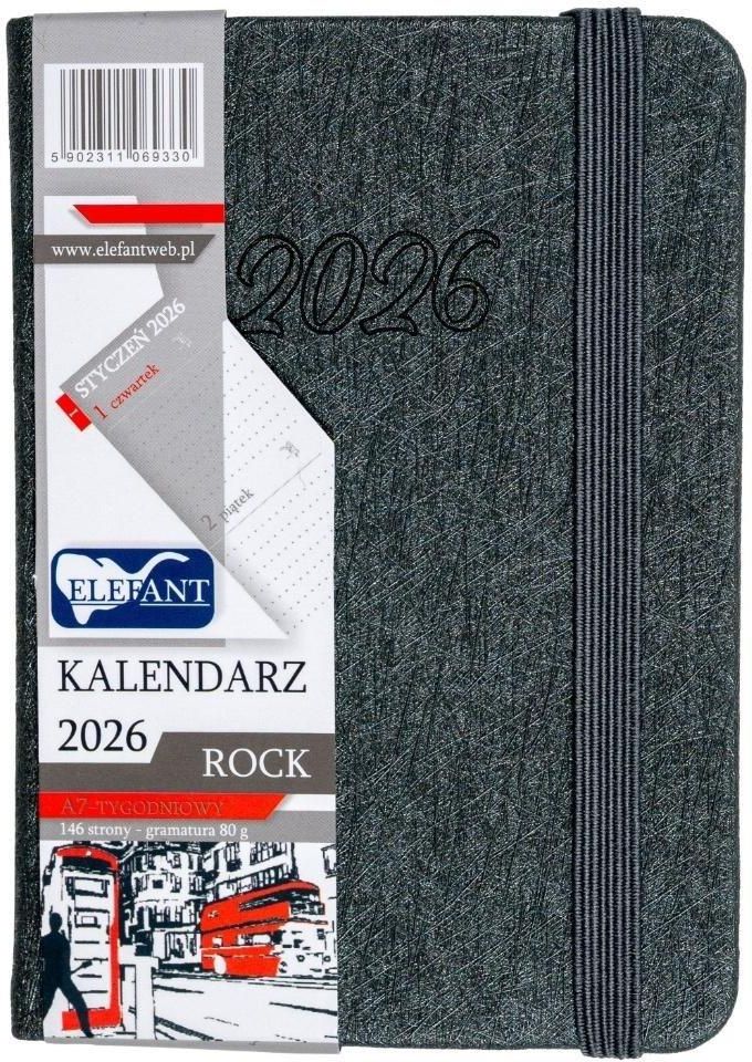 Kalendarz 2026 A7 tyg Rock szary Ropczyce