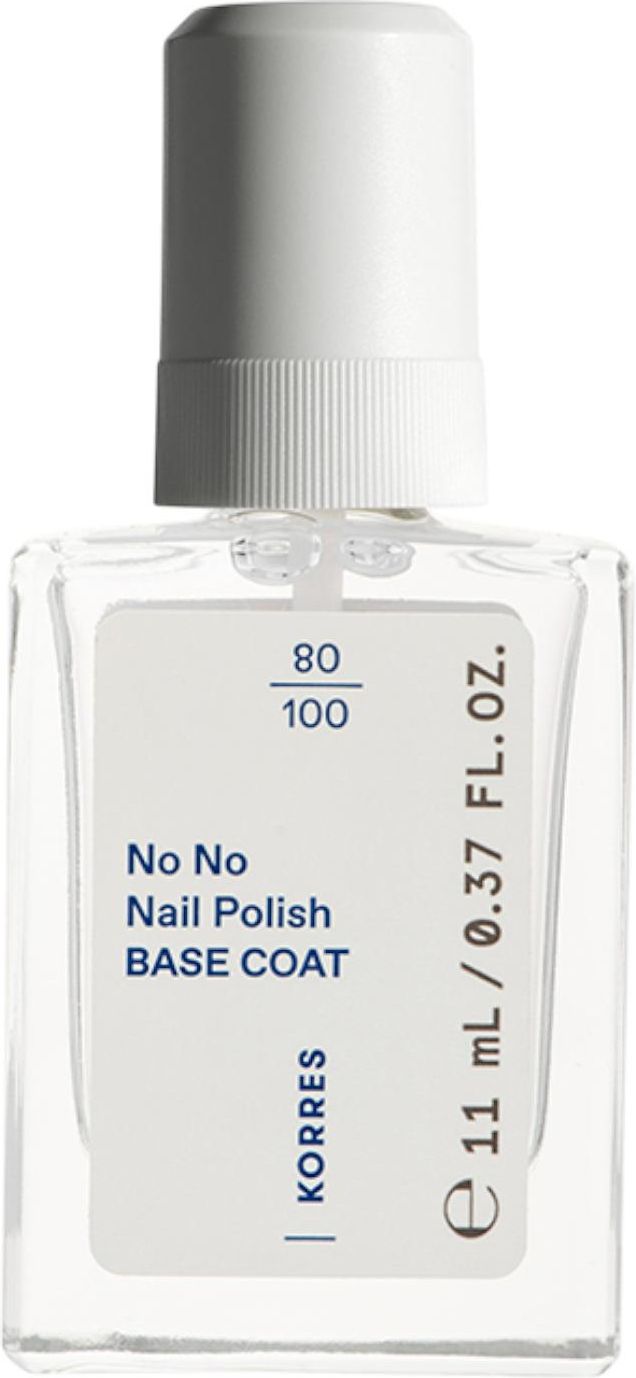 Korres Lakier do paznokci Base CoatLakier bazowy No No Nail Polish to produkt o wysokiej zawartości składników naturalnych, który chroni paznokcie i tworzy idealnie gładką bazę pod kolor. Zapewnia imponujący efekt bez kompromisów – dla zdrowych, zadbanych paznokci i trwałego manicure.Zalety:80% składników pochodzenia naturalnego0% silikonów, oleju mineralnego i talkuBEZ 10 – wolny od 10 agresywnych substancji chemicznychOdpowiedni dla wegan – formuła bez karminuSposób użycia (3 kroki):Nałóż jed