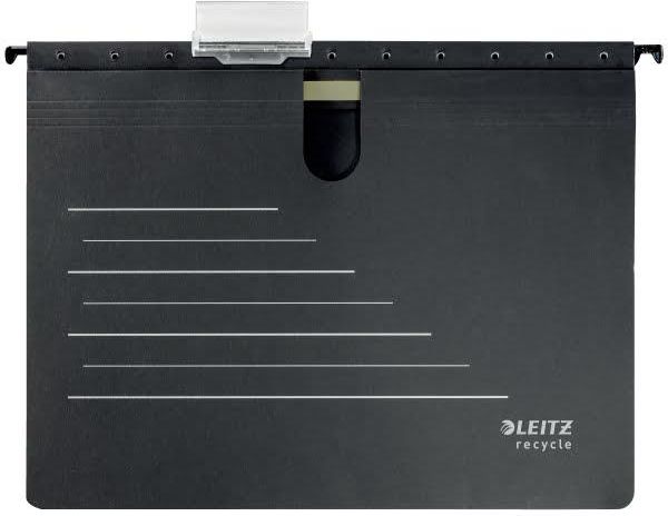 Najwyższej jakości atrakcyjny skoroszyt zawieszany, na dokumenty w formacie A4. Wykonany z kartonu pochodzącego w 100% z recyklingu, neutralny dla klimatu, w 100% nadający się do ponownego przetworzenia, z certyfikatem środowiskowym Blue Angel.Najwyższej jakości atrakcyjny skoroszyt zawieszany, na dokumenty w formacie A4. Wykonany z kartonu pochodzącego w 100% z recyklingu, neutralny dla klimatu, w 100% nadający się do ponownego przetworzenia, z certyfikatem środowiskowym Blue Angel. Wykonany z kartonu w 100% pochodzącego z recyklingu, w 100% nadający się do ponownego przetworzenia, neutralny dla klimatu, z certyfikatem Blue Angel. Zapewnia oszczędność miejsca dzięki pionowej archiwizacji przedziurkowanych dokumentów. Mocny i trwały mechanizm skoroszytowy do przedziurkownych dokumentów A4 zaprojektowano tak, by służył przez długie lata. Najwyższej jakości karton pochodzący z recyklingu o gramaturze 275 g/m2. Łatwa identyfikacja zawartości dzięki przezroczystemu ruchomemu uchwytowi na wsuwane papierowe etykiety. Otwarte boki ułatwiają dostęp do dokumentów. Nowoczesny i stylowy czarny kolor z jasnoszarym nadrukiem. Zaprojektuj - na stronie www.leitz-easyprint.com - i wydrukuj własną etykietę na grzbiet. Wyprodukowany w Europie. Tylko etykieta - bez odpadów opakowaniowych.