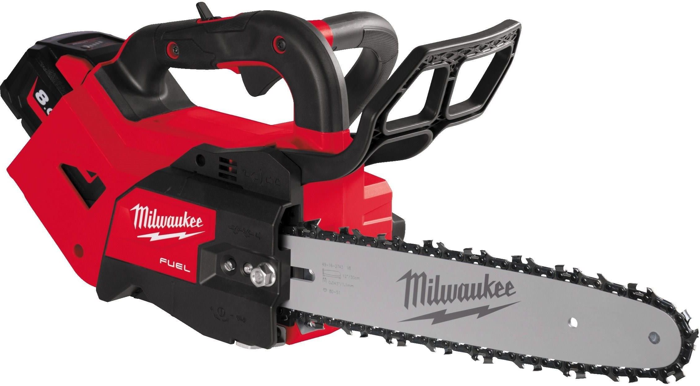 M18 FTHCHS30-802 | M18 FUEL™ PILARKA ŁAŃCUCHOWA Z GÓRNYM UCHWYTEM 30 CM Znakomita prędkość cięcia w twardym drewnie w porównaniu z niektórymi pilarkami spalinowymi lub pilarkami z górnym uchwytem o wyższym napięciu  Wysoki moment obrotowy do cięć w wymagających materiałach i utrzymanie prędkości pod dużym obciążeniem bez zacinania się  Technologia FUEL™ pozwala na osiągnięcie pełnej mocy w czasie krótszym niż 1 sekunda  Do 150 cięć w twardym drewnie o wymiarach 10x10 cm na jednym ładowaniu akumulatora M18™ HIGH OUTPUT™ 8.0 Ah  Konstrukcja górnego uchwytu i zoptymalizowana równowaga idealnie nadaje się do pielęgnacji drzew na wysokościach  Włącznik spustowy z regulacją prędkości pozwala na pełną kontrolę mocy  Pasek z karabińczykiem do szybkiego mocowania i wyjmowania z uprzęży Ergonomiczny, wygięty uchwyt kabłąkowy zapewnia wygodną obsługę w wielu pozycjach  Wbudowany schowek i łatwy dostęp do napinacza łańcucha dla większego komfortu użytkownika  Metalowe kolce powodują zwiększenie siły dźwigni podczas cięcia  Szczelny zbiornik oleju z łatwo dostępnym otworem i okienkiem podglądu ilości cieczy W zestawie 76 ml oleju, klucz serwisowy i pokrowiec  System narzędzi HIGH OUTPUT™ wynosi technologie M18 FUEL™ na nowy poziom i zapewnia zwiększoną wydajność oraz wydłużony czas pracy. Narzędzia te zostały zaprojektowane tak, aby zmaksymalizować współpracę z akumulatorami HIGH OUTPUT™  Elastyczny system bateryjny gwarantuje współpracę ze wszystkimi akumulatorami MILWAUKEE® M18™