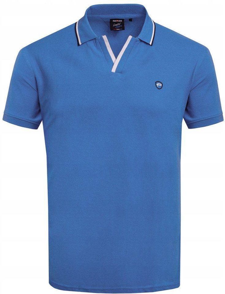 Pako Jeans Koszulka Polo Męska Niebieska Dekolt Bez Guzików Ropczyce