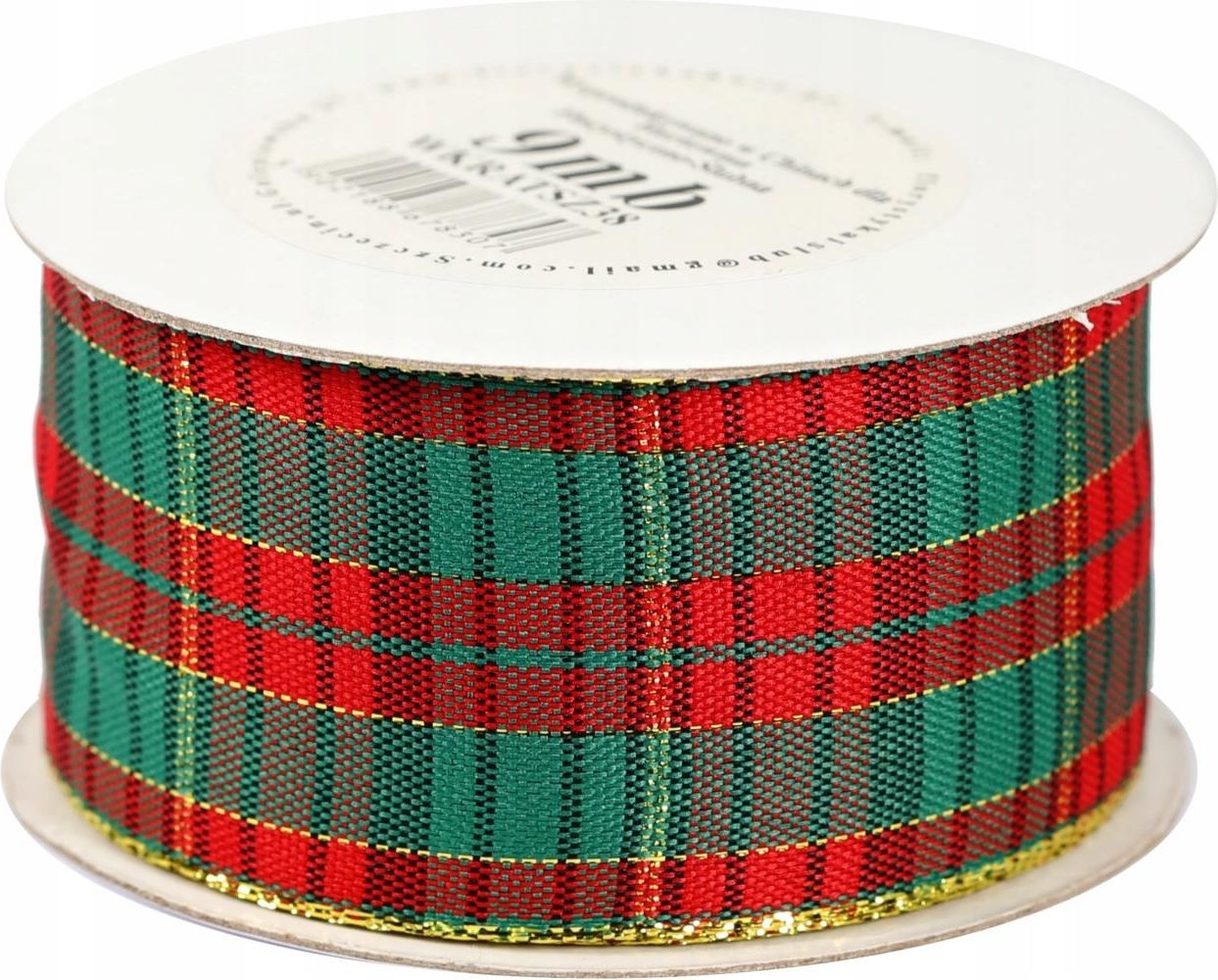 Pogotowie Florystyczno-Ślubne Wstążka Taśma Materiałowa W Szkocką Kratę Na Święta Pozłacana 50Mm/9Mb Ropczyce