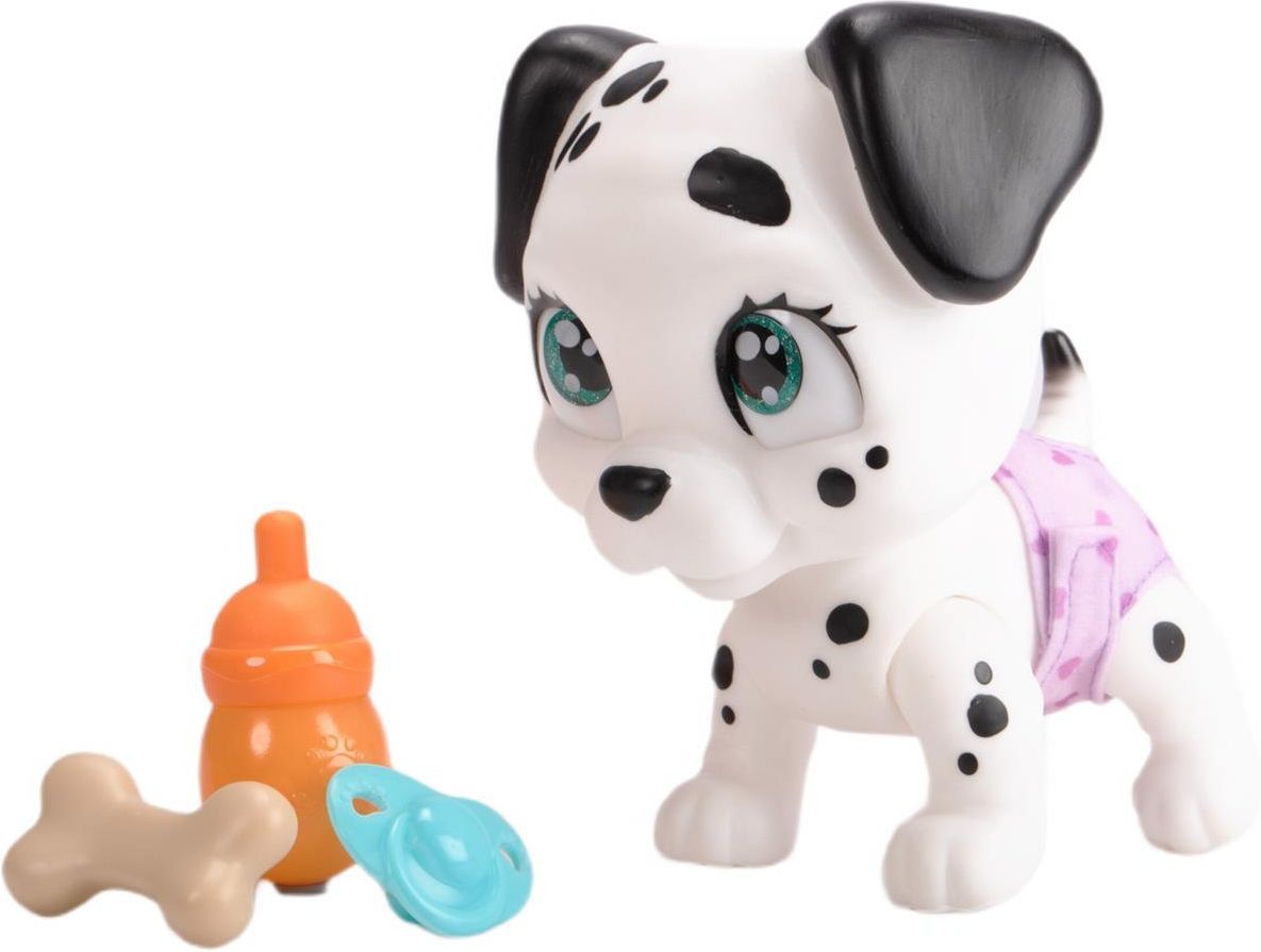 Pamper Petz Dalmatyńczyk Słodki Piesek Dalmatyńczyk z pieluszkowego gangu jest gotów, aby dziecko otoczyło go miłością i troską. Słodki wilczek pragnie, by go oswoić i zabrać do aktywnej i wciągającej zabawy. Potrafi pić wodę z butelki i robić siusiu do pieluszki, która pod wpływem wilgoci zmienia …