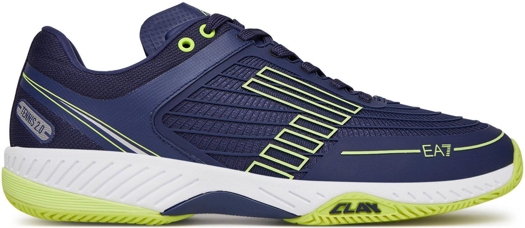 EA7 XK438-X8X242 to techniczne buty zaprojektowane specjalnie do gry na korcie ziemnym. Cholewka KPU zapewnia idealną równowagę między wydajnością, oddychalnością i trwałością, a stabilizator w podeszwie środkowej zapewnia doskonałą stabilność podczas zmian kierunku. Najważniejsze cechy: Specjalistyczna konstrukcja do kortów ziemnych. Cholewka z tworzywa KPU zapewnia trwałość i wytrzymałość. Stabilizator w podeszwie środkowej poprawiający stabilność podczas ruchów bocznych. Elastyczne rowki w podeszwie zewnętrznej zwiększają przyczepność na kortach ziemnych. Połączenie kolorów "Medieval Blue/Fluor Yellow", idealne dla nowoczesnego, sportowego wyglądu. Materiały techniczne: Cholewka: 100% poliester ze wzmocnieniami z poliuretanu i termoplastycznego poliuretanu. Język: połączenie poliestru i termoplastycznego poliuretanu dla większego komfortu. Podszewka i wkładka: 100% poliester, zapewniający oddychalność i wygodę. Podeszwa środkowa: 100% EVA (etylen-octan winylu), zapewniająca optymalną amortyzację. Podeszwa zewnętrzna: 100% gumy ze specjalnymi nacięciami zapewniającymi lepszą przyczepność na kortach ziemnych. EA7 XK438-X8X242 to idealny wybór dla tenisistów poszukujących trwałego, stabilnego buta o wyjątkowej przyczepności na kortach ziemnych.. Ref.: X8X242_XK438, Wysokość obcasa: Mapa, Zamknięcie: Smycze, Styl: Zwykły, Styl: Deportivo, Materiał zewnętrzny: Syntetyczny, Sport: Tenis/Padel, Sport: Multisport, Kolor: Marino