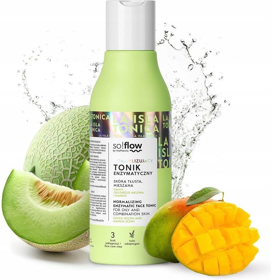 So!Flow Normalizujący Tonik Enzymatyczny Skóra Tłusta Mieszana Melon i Mango 150ml Delikatny, a zarazem skuteczny produkt stworzony z myślą o pielęgnacji skóry tłustej i mieszanej. Dzięki enzymom z figi (ficyna) i kwasom owocowym AHA, tonik skutecznie złuszcza martwe komórki naskórka, odblokowuje …