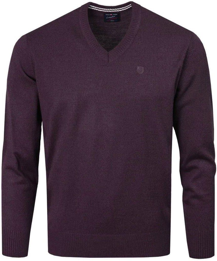 Sweter Męski Wełniany - Dekolt w Serek - Pako Jeans - Śliwkowy SWPJNSjoshSL Ropczyce