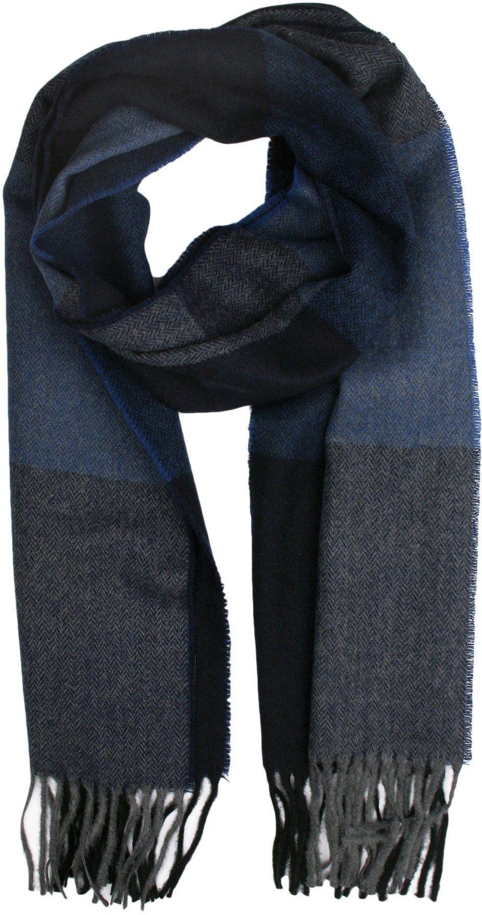 Szalik Granatowo-Niebieski w Kratkę z Frędzlami, Męski, Jesienno-Zimowy z Wełną -V. FRAAS SZAWLN1226 Ropczyce