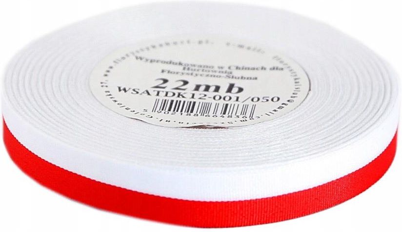 Szarfa wstążka flaga POLSKA materiałowa 12mm/22mb Materiałowa dwustronna wstążka biało-czerwona Cechy: Szerokość = 12mm, Długość = ok. 22 mb. Symbol: WSATDK12-001/050 Produkt od bezpośredniego importera Na innych ofertach są dostępne szerokości: 6-9-19-25-38-50-75-100mm