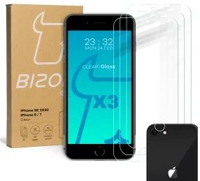 Bizon 3x Szkło hartowane + szybka na aparat Glass Clear Pack do iPhone SE 2022 / 2020 / 8 / 7 Różan