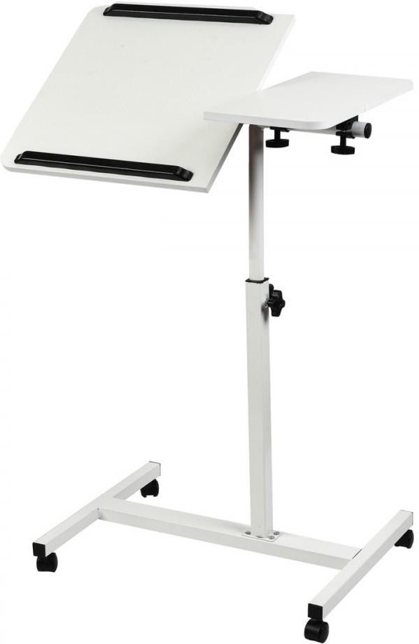 Stolik stand pod laptop tablet regulowany mobilne biurko wozek na kolkach MC-121 (90314) Regulacja wysokości w zakresie od 590 do 890 mm umożliwia dopasowanie do różnych potrzeb i ustawień roboczych Dwa niezależne blaty robocze – większy i mniejszy, każdy z możliwością regulacji kąta nachylenia do …