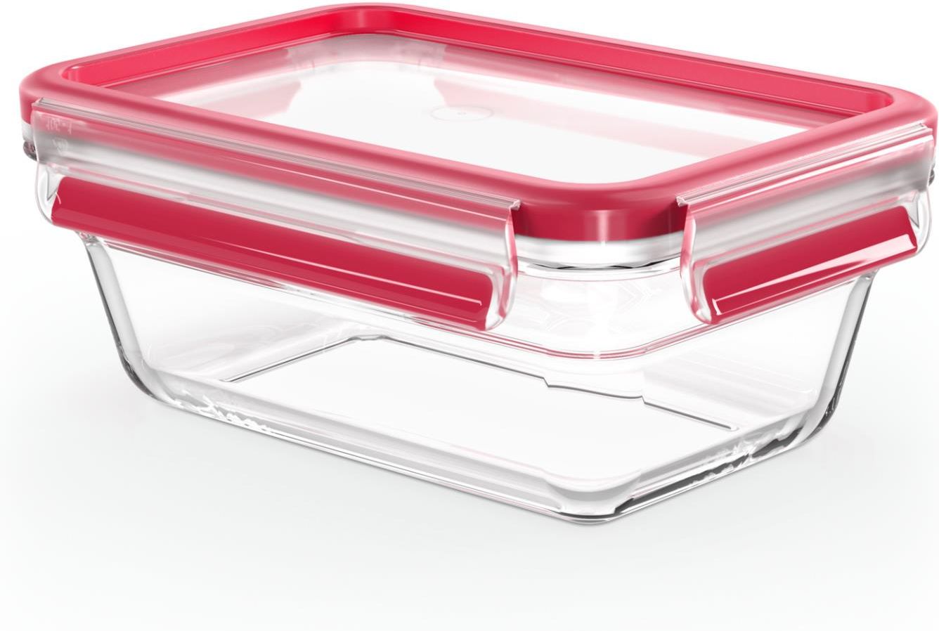 Tefal MASTER SEAL GLASS 850 ml N1040810 Szklany prostokątny pojemnik na żywność 0,85L posiada doskonałą 100% szczelną silikonową uszczelkę, dzięki której Twoje jedzenie jest do dwóch razy bardziej świeże, a Ty nie musisz się martwić, że zawartość wycieknie.  Główne zalety: - szklany pojemnik na żywność - do podawania, gotowania, transportowania i przechowywania żywności - nadaje się do zamrażarki, mikrofalówki (bez pokrywki), piekarnika i zmywarki - 100% szczelność pokrywy