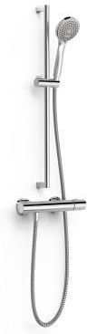· Okrągła kierownica ABS · Drążek prysznicowy: długi. 673 mm i Ø 20,6 mm · Przesuwany i regulowany wspornik główki prysznicowej · Główka prysznicowa zapobiegająca osadzaniu się kamienia: Ø 100 mm. (3 rodzaje strumienia) · Wąż metalowy. Chromowane wykończenie. Natężenie przepływu (l/min): 14 Główka prysznicowa ABS. Easy-Clean®. Łatwe czyszczenie wkładu termostatycznego bez utraty kalibracji temperatury. Element łączący: MURAL G1/2" Materiał: mosiądz o niskiej zawartości ołowiu Wymiary główki prysznicowej: 100 Nowość Odporność na korozję: Zgodnie z EN-248 Tres Instant: Głowica termostatyczna gwarantuje stały przepływ wody o żądanej temperaturze w przypadku wahań ciśnienia lub temperatury.