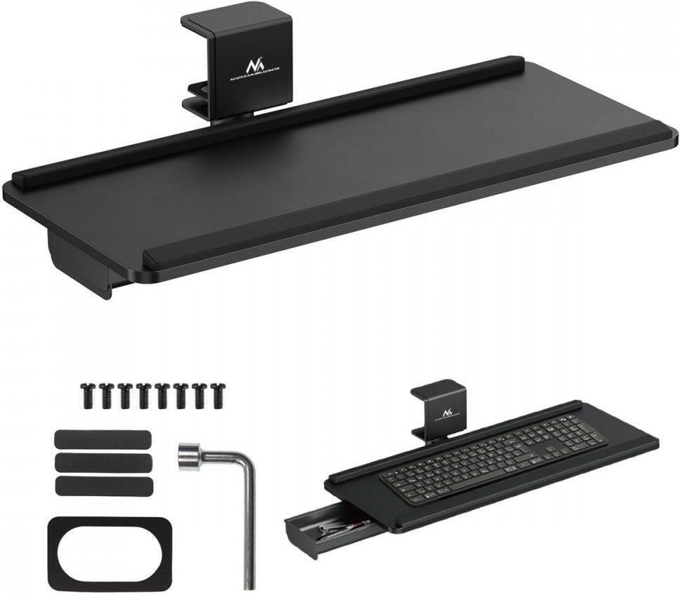 Uchwyt na klawiaturę pod biurko podstawka regulowany do 5kg czarny MC-108 B (89894) Obrotowa konstrukcja umożliwia wygodne przesuwanie uchwytu pod blat, gdy nie jest używany Regulacja nachylenia dla lepszego dopasowania kąta klawiatury i większej ergonomii pracy Montaż zaciskowy – szybki i bezinwazyjny montaż bez wiercenia w blacie Wbudowana podpórka na nadgarstki zapewnia wygodę i odciąża dłonie podczas pisania Możliwość montażu pod biurkiem lub na blacie – elastyczne dopasowanie do różnych typów stanowisk pracy Duża powierzchnia zapewnia wystarczająco dużo miejsca na mysz i klawiaturę Dodatkowa mała szuflada pod platformą – idealna na drobne akcesoria, może być montowana po lewej lub prawej stronie Nowoczesny wygląd pasujący do biura i domowego stanowiska pracy. Kolor: czarny Podbiurkowy uchwyt na klawiaturę Maclean, max. obciążenie 5kg, reg. w poziomie i pionie, czarny, MC-108 B Podbiurkowy uchwyt na klawiaturę MC-108 to nowoczesne i ergonomiczne rozwiązanie, które znacząco poprawia komfort pracy przy biurku. Uchwyt montowany jest za pomocą solidnego zacisku, dzięki czemu nie ma potrzeby wiercenia – można go łatwo zamontować i zdemontować bez uszkodzenia blatu. Duża powierzchnia pomieści klawiaturę i myszkę, a dzięki wbudowanej podpórce na nadgarstki użytkownik zyskuje dodatkową wygodę i wsparcie dla dłoni podczas długich godzin pracy. Instalacja uchwytu odbywa się za pomocą zacisku, dzięki czemu nie wymaga wiercenia i nie pozostawia śladów na meblach. To szczególnie wygodne rozwiązanie dla osób pracujących w wynajmowanych przestrzeniach lub chcących uniknąć trwałych modyfikacji biurka. Uchwyt łączy w sobie funkcjonalność, wygodę i nowoczesny design, idealnie wpisując się w każde biurowe lub domowe stanowisko pracy. Uchwyt MC-108 posiada funkcję obrotu o 180°, co pozwala na wygodne wsunięcie go pod blat, gdy nie jest używany, oraz swobodne dopasowanie jego położenia do indywidualnych potrzeb. Regulacja nachylenia umożliwia ustawienie klawiatury pod odpowiednim kątem, co dodatkowo wpływa na ergonomię i zmniejsza napięcie mięśniowe. Całość zaprojektowana jest z myślą o elastyczności – uchwyt można zainstalować zarówno pod biurkiem, jak i na jego krawędzi. Dodatkowym atutem zestawu jest mała szuflada montowana pod główną platformą, którą można zainstalować po lewej lub prawej stronie, w zależności od preferencji użytkownika. Szufladka idealnie nadaje się na drobne akcesoria, takie jak długopisy, pendrive’y, karteczki czy słuchawki, pomagając utrzymać porządek na stanowisku pracy i mieć najpotrzebniejsze rzeczy zawsze pod ręką. Specyfikacja techniczna Producent: Maclean Model: MC-108 B Kolor: czarny Materiały wykonania: stal malowana proszkowo, MDF, plastik Wymiary: 635 x 372 x 169 mm Maksymalne obciążenie: 5 kg Regulacja nachylenia: od +5° do -20° Regulacja obrotu: od +180° do -180° Zestaw zawiera Podbiurkowy uchwyt na klawiaturę Maclean MC-108 B Akcesoria montażowe Instrukcja montażu Opakowanie producenta kod produktu:89894 CE42TG