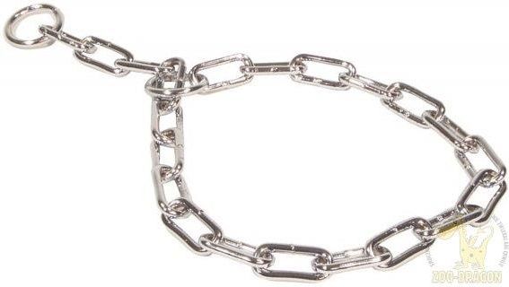 Zolux Obroża metalowa dla psa zaciskowa gruba 65 cm Ta metalowa obroża zaciskowa o dużych ogniwach została stworzona specjalnie dla owczarków niemieckich. Jest to produkt wysokiej jakości, który może być używany do szkolenia psa z tendencją do nadmiernego szarpania smyczy. Przeznaczona dla psów obwodzie szyi poniżej 62 cm. Długość obroży: 65 cm Nie jest zalecana dla psów mających problemy z oddychaniem.