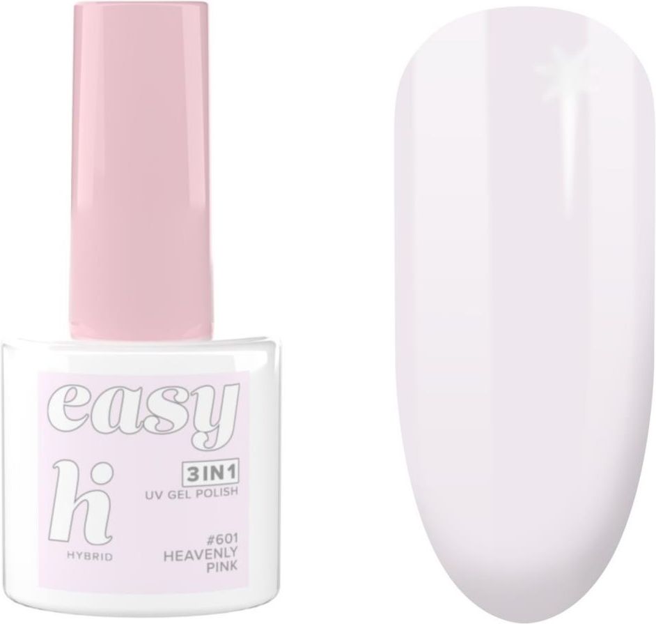 Zachodzące słońce i niebo pełne leniwie przepływających biało-różowych obłoczków. Taki widok zawsze zwiastuje dobrą pogodę, skorzystaj z tego i odpłyń nawet na dłuższą chwilę. Nie musisz się spieszyć! Z lakierami hi hybrid easy 3w1 masz teraz jeszcze więcej czasu dla siebie Marzysz o paznokciach w nieco bardziej delikatnym wydaniu? Wybierz zwiewny jak wata cukrowa kolor #601 Heavenly Pink. Bardzo dyskretny odcień rozbielonego różu to prawdopodobnie najlepsza inspiracja na manicure na co dzień.Produkt testowany dermatologicznie.Wegańska formuła.STOSOWANIE Proste jak 1,2,3 To Twój pierwszy raz? Easy! Poniżej podpowiadamy jak w kilku prostych krokach zrobić samodzielnie mani lakierami easy 3w1: KROK 1: Nadaj kształt paznokciom przy użyciu pilnika, zmatuj płytkę bloczkiem polerskim, a następnie odtłuść paznokcie Nail Cleanerem hi hybrid. KROK 2: Pomaluj paznokcie cienką warstwą lakieru hi hybrid easy 3w1, pomaluj także brzeg paznokcia i utwardź w lampie (60s w lampie o mocy 24W). KROK 3: Powtórz krok 2 nakładając kolejne warstwy aż do uzyskania satysfakcjonującego krycia (rekomendujemy nakładać 3 cienkie warstwy produktu). KROK 4: Na koniec przetrzyj lakier wacikiem nasączonym Nail Cleanerem hi hybrid. Czy może być jeszcze prościej? CZAS UTWARDZANIALAMPA HI HYBRID 24W 60s ŚRODKI OSTROŻNOŚCI Chronić przed dziećmi. Proszę uważnie przeczytać sposób użycia. Unikać kontaktu ze skórą. Unikać kontaktu z oczami. Nie wdychać bezpośrednio par produktu. Może powodować reakcję alergiczną. Należy utwardzić w lampie UV/LED. Tylko do użytku profesjonalnego. PRZECIWWSKAZANIA: Jakiekolwiek zmiany chorobowe płytki oraz w okolicy płytki paznokcia m.in.: grzybica paznokci i około paznokciowa, zanokcica, drożdżyca w obrębie pola zabiegowego, brodawki okołopaznokciowe i podpaznokciowe, łuszczyca paznokci. Oddzielanie się płytki paznokciowej (onycholiza). Stany zapalne lub alergiczne. Urazy paznokci, infekcje paznokci i ich okolic. Skaleczenia w obrębie pola zabiegowego. Podrażnienia skórek oraz płytki paznokciowej powstałe w trakcie wykonywania klasycznego manicure np. w trakcie wycinania skórek. Nadwrażliwość na którykolwiek ze składników produktu.