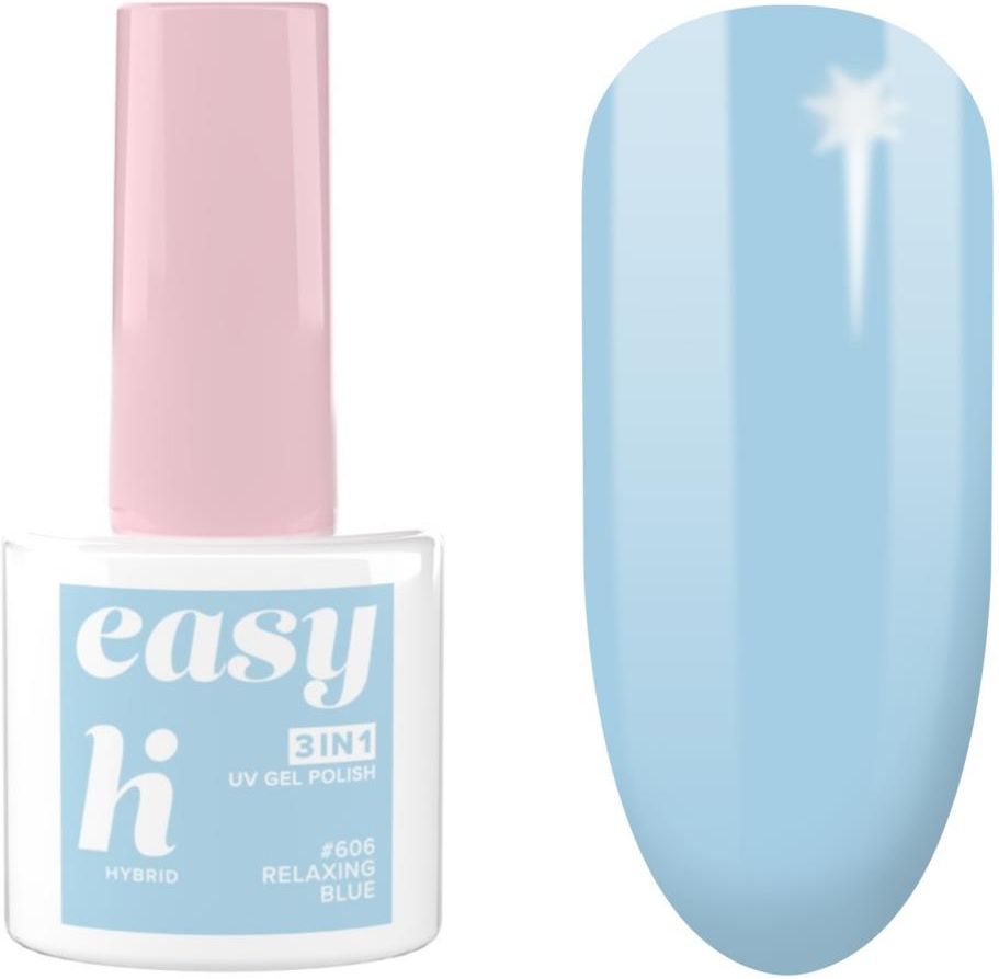 HI HYBRID LAKIER HYBRYDOWY EASY 3W1 #606 RELAXING BLUE Weź głęboki oddech, zanurz się w błękitnej toni i poczuj przyjemnie kojącą moc. Możesz się odprężyć, jesteś kwiatem lotosu na spokojnej tafli jeziora. Bo czym się tu martwić? Z lakierem easy 3w1 samodzielny manicure jest jeszcze szybszy i …