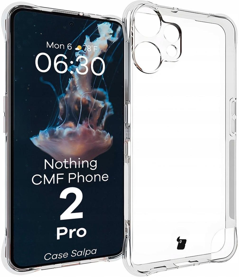Etui Bizon Case Salpa Do Nothing CMF Phone 2 Pro Wersja kolorystyczna: Clear (przezroczysta) Materiał: TPU Przezroczysty, minimalistyczny design Ochrona przed zarysowaniami i zabrudzeniami Doskonałe dopasowanie Smukła i lekka budowa Wzmocnione narożniki Podwyższone krawędzie ekranu i aparatu Dedykowane wycięcia na obiektywy Kropkowana powierzchnia Niezbędne wycięcia Utrzymana płynność działania przycisków Łatwy montaż i demontaż Wycięcie na smyczkę Kod produktu: 5900415704904 Kod producenta: BCSCMFP2PCL Etui kompatybilne ze szkłami* o wymiarach mniejszych niż (dług./szer.): 16,29 x 7,57 cm * Bolączki z dobraniem pasującego szkła? Wybierz Bizon Glass Clear ❤️! Transparentna ochrona Przezroczyste etui marki Bizon z serii Salpa to lekka obudowa, która idealnie sprawdzi się w codziennym użytkowaniu i ochroni Twojego smartfona przed zarysowaniami i zabrudzeniami, zachowując przy tym oryginalny wygląd urządzenia. Etui wyróżnia subtelne logo w kształcie głowy bizona. Smukła i lekka konstrukcja Pokrowiec został wykonany z elastycznego, termoplastycznego poliuretanu, dzięki czemu montaż i demontaż nie sprawi Ci większych problemów. Etui cechuje niewielka grubość, a jego dodatkowym atutem jest kropkowana powierzchnia zapobiegająca przywieraniu etui do urządzenia. Obudowa posiada wzmocnione narożniki oraz krawędzie delikatnie wysunięte nad ekran, które dodatkowo zabezpieczą smartfona szczególnie na płaskich powierzchniach. Aparat bez skaz To etui ochroni także Twój aparat! Dedykowane wycięcia na obiektywy wraz z podwyższonymi krawędziami stanowią dodatkową ochronę dla soczewek, zapobiegając niechcianym zarysowaniom aparatu. Pełna funkcjonalność Etui posiada niezbędne wycięcia i zapewnia pełen dostęp do portów i przycisków, a wycięcie zlokalizowane z boku etui pozwala na przypięcie do telefonu smyczki*. Pokrowiec nie blokuje ładowania indukcyjnego (dotyczy modeli wyposażonych w tę funkcję). * Smycz nie znajduje się w zestawie. Ekologiczne opakowanie
