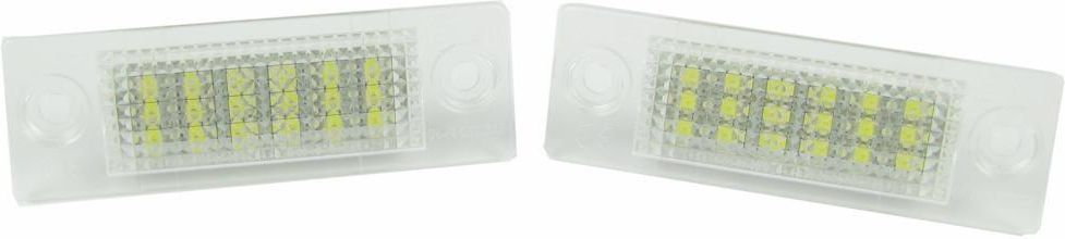Lampki tablicy rejestracyjnej LED - EINPARTS EP23 Komplet 2 lampek LED do oświetlenia tablicy rejestracyjnej, zamiennik oryginalnie stosowanego oświetlenia, z homologacją z możliwością legalnego użytkowania na europejskich drogach. Dużo lepszy efekt podświetlenia tablicy, którego nie zastąpią żadne zwykłe diody SMD. BRAK BŁĘDÓW KOMPUTERA POKŁADOWEGO Współpracuje z samochodami wyposażonymi w instalację CAN. Nie generują błędów spalonej żarówki oraz efektu "żarzenia" po włączeniu. CENA ZA KOMPLET - 2 SZTUKI EinParts Automotive – Niemiecka myśl techniczna EinParts Automotive to marka charakteryzująca się wysoką jakością oraz przystępną ceną oferowanych produktów. Wieloletnie doświadczenie w branży motoryzacyjnej pozwoliło specjalistom z EinParts Automotive oferować na rynku części i akcesoria od najlepszych europejskich i azjatyckich producentów w rewelacyjnych cenach. Staranny dobór producentów i materiałów, różne metody testów oraz kontrole procesu produkcji sprawiają, że produkty EinParts Automotive zadowalają nawet najbardziej wymagającego Klienta. Wiele produktów EinParts Automitive cieszy się popularnością wśród zachodnich konsumentów. Lampki tablicy rejestracyjnej dopasowane do Skoda Superb 2002 – 2008 VW Golf Plus 2005 – 2009 VW Passat B5 FL sedan 2000 – 2005 VW Passat B6 kombi 2006 – 2008 VW Touran 2003 – 2010 VW Transporter 2003 – 2012 VW Jetta 2006 – 2011 Specyfikacja produktu Lampki zaprojektowane pod konkretny samochód 18 diod LED wysokiej mocy na jedną lampkę Obudowa wykonana z najwyższej jakości plastiku (nie korodują) Wymiary lampki 73 mm x 24 mm x 11 mm (długość x szerokość x głębokość) Bezinwazyjny montaż "Plug and play". Po prostu wyjmij oryginalną lampkę z Twojego samochodu i zastąp ją naszą. Nigdy nie było prościej. Zalety lampek LED EINPARTS Ledowe podświetlenie tablicy rejestracyjnej, Całkowicie nowy wygląd: kolor biały zimny - temperatura świecenia 6000K, Niski pobór mocy, Diody SMD wysokiej klasy, Prosta instalacja, nie wymaga przeróbek, Daje twojemu pojazdowi nowoczesny wygląd,