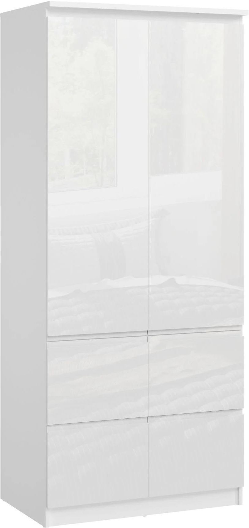 Szafa Boston BOSS12 2D4S akryl biały połysk to eleganckie rozwiązanie do przechowywania, które łączy nowoczesną estetykę z wysoką funkcjonalnością. Dzięki dwuskrzydłowej konstrukcji i czterem praktycznym szufladom, model ten zapewnia uporządkowaną przestrzeń zarówno na ubrania wiszące, jak i składane. Cztery zamknięte półki umożliwiają wygodne rozmieszczenie akcesoriów, a frezowane uchwyty nadają całości subtelnego, nowoczesnego charakteru. Fronty z płyty akrylowanej w kolorze biały połysk przyciągają wzrok lustrzanym odbiciem światła i doskonale komponują się z białym korpusem wykonanym z trwałej płyty laminowanej. Obrzeża zabezpieczone materiałem ABS zwiększają odporność mebla na codzienne użytkowanie. Szafa ma wymiary 91,1 × 213 × 58,5 cm i została zaprojektowana z myślą o samodzielnym montażu. Model ten sprawdzi się zarówno w aranżacjach młodzieżowych, jak i nowoczesnych, pasując zarówno do sypialni, garderoby, jak i przedpokoju czy spiżarni.