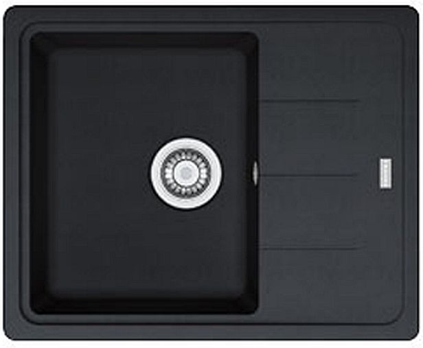FRANKE BASIS BFG 611-62, zlewozmywak onyx 114.0285.105 Wymiary zewnętrzne: 620 × 500 mm Minimalna podbudowa: 45 cm Typ : 1-komorowy, Z ociekaczem Wymiary komory: 340 × 420 × 200 mm Kolor: onyx Materiał: fragranit Zlewozmywak wpuszczany w blat Cena obejmuje: -zawór mimośrodowy z sitkiem 3,5 cala z …